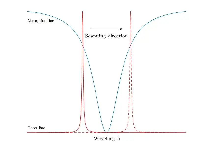 GasEye Extractive is a laser spectrometer that uses single line molecular absorption spectroscopy. A semiconductor laser emits a beam of infrared light which passes through the process and impinges the detector on the receiver side. When the target gas is present the light intensity changes and this can be used to determine the concentration of the measured specimen. The wavelength of the radiation emitted by the laser is chosen to match the specific absorption line wavelength of the gas. The laser continuously scans this single absorption line with a very high spectral resolution. The measurement is free of cross-interferences since the laser light is absorbed very selectively by only one specific line in the scanned spectral range.